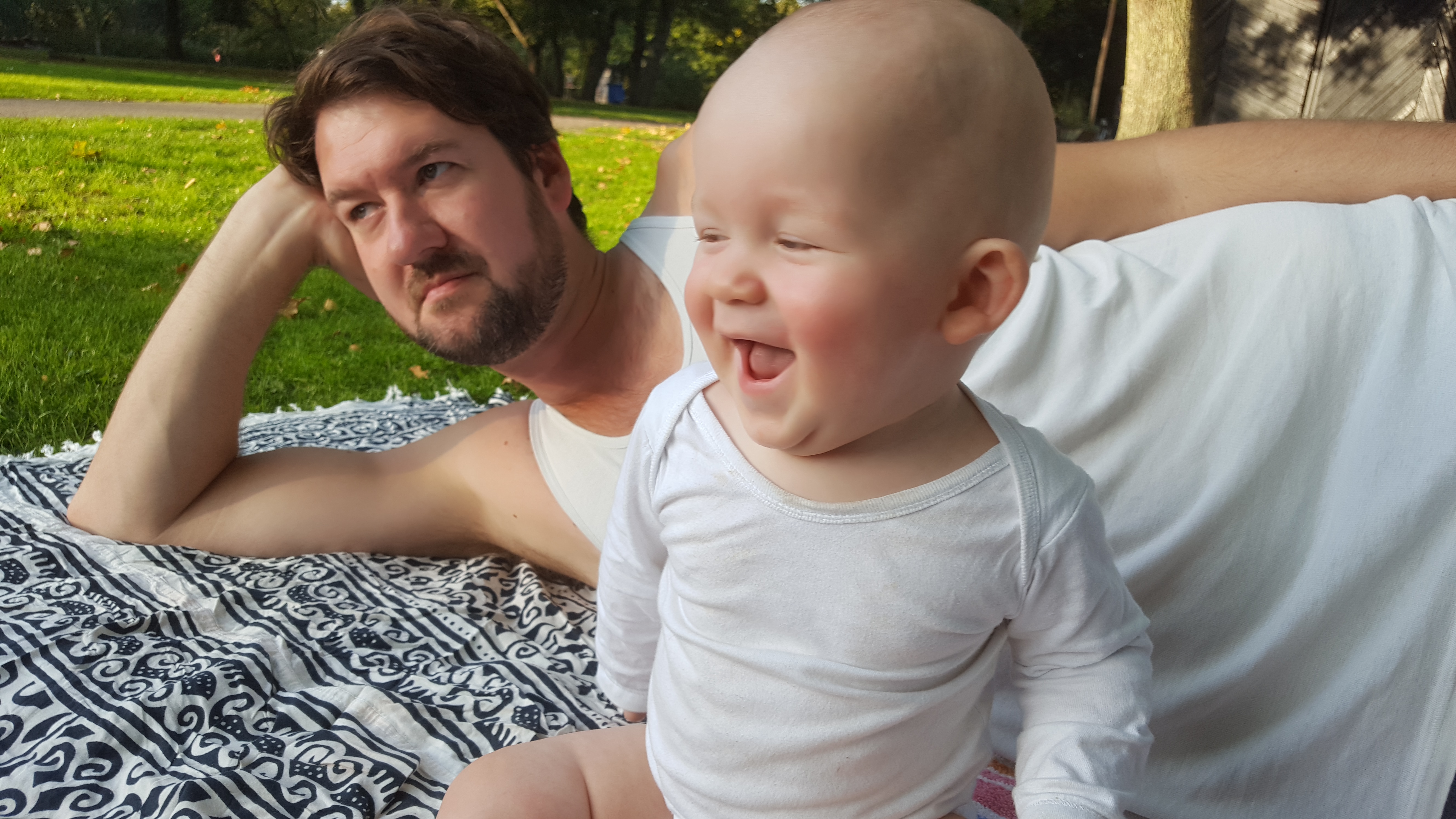 Weet je wie nóg meer groeit dan jijzelf, Louie? Je papa. En dat doe ik (figuurlijk, niet qua figuur -gelukkig maar) louter omdat jij er bent. In de twijfel om ons al of niet aan nakomelingen te wagen, kwam steeds maar weer mijn en mama’s vrijheid als voornaamste obstakel ter sprake. Vrij zijn om onze verlangens lustig na te jagen. Vrij zijn om eens een dagje niks te hoeven.Vrij zijn als tegengesteld aan die andere V’s: verplichtingen en verantwoordelijkheid. In mijn tweede jeugd (rond mijn dertigste) bakende ik ironisch genoeg vrijheid af tot iets wat grijpbaar voor me was: soloreizen, nachtelijke escapades, niet te veel verplichtingen. Ik hing vrijheid -als een wortel voor een ezel- in mijn blikveld en waggelde of galoppeerde er achteraan. Als ik het dan eindelijk vastbeet, verslond ik het alsof ik enkel hierom geboren was en nu rustig kon sterven….tot… een nieuwe wortel mijn blikveld passeerde. Vraag maar aan je mama hoe ik nog steeds deze vrijheidsverhalen als heldendichten zit op te halen. Ik ben een herkauwer. En nu -rond mijn veertigste- leer jij me dat vrijheid niet per definitie een individuele of ‘tweezame’ zaak is. Je toont me dat binnen het begrensde kader van verplichtingen en verantwoordelijkheid waar we nu in vertoeven, zoveel nieuwigheden en verrassingen kunnen worden aangeboord. Vrijheid wordt niet verengd tot ‘mijn eigen gangetje gaan’. Het is een weg die breder is geworden en meer vertakkingen kent, louter omdat het blikveld en het fascinerende gedrag van een dreumes een onbegrensde rijkdom behelst. Alsof vrijheid nu geen pad meer is dat halsstarrig tot voorbij de horizon reikt, maar een hele delta die -via elke mogelijke route- sowieso uitmondt in een zee van liefde.Oei Louie, je papa wordt soft op z’n oude dag. Hopelijk vergeef je me het mierzoete en die truc met de gedroogde uitjes. Maar geen haast hoor, je bent tenslotte nog maar 19 maanden oud.
